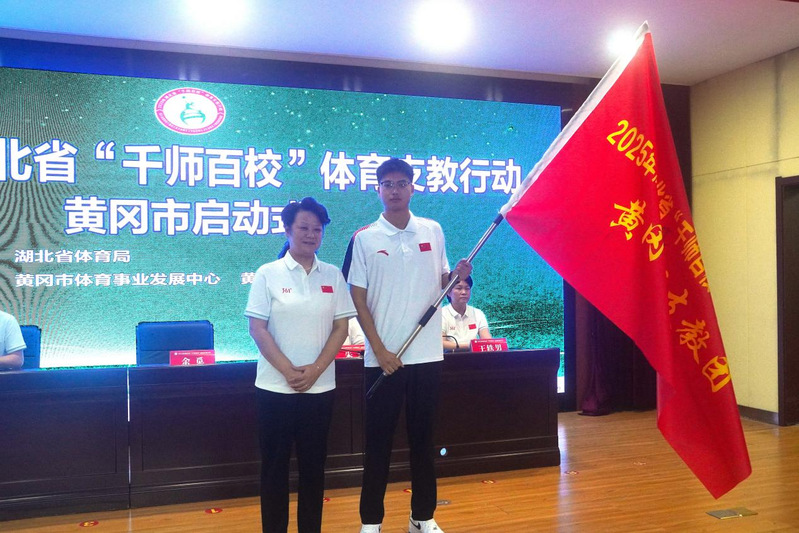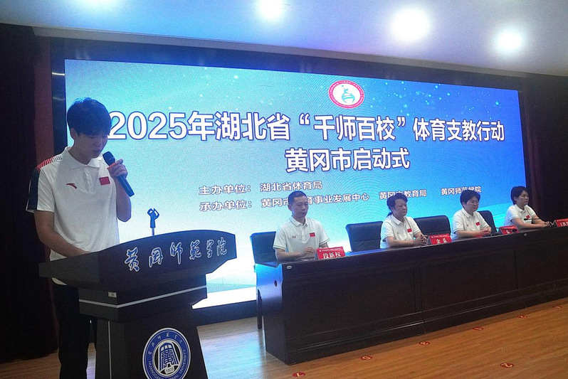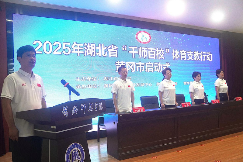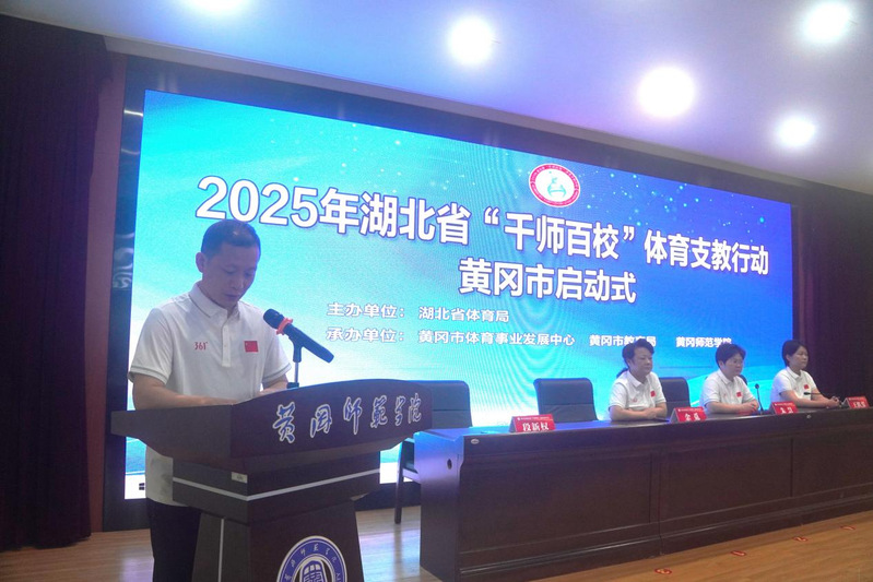 2025年9月19日,2025年湖北省“千师百校”体育支教行动黄冈启动式在黄冈师范学院隆重举行,黄冈市体育事业发展中心主任余觅、副主任王轶男,黄冈师范学院体育学院党委书记段新权,黄冈市教育局副局长朱慧,蕲春县教育局和体育局代表、黄州区体育局代表以及全体体育支教师生出席启动式。启动式由黄冈市体育事业发展中心青少科副科长易建林主持。