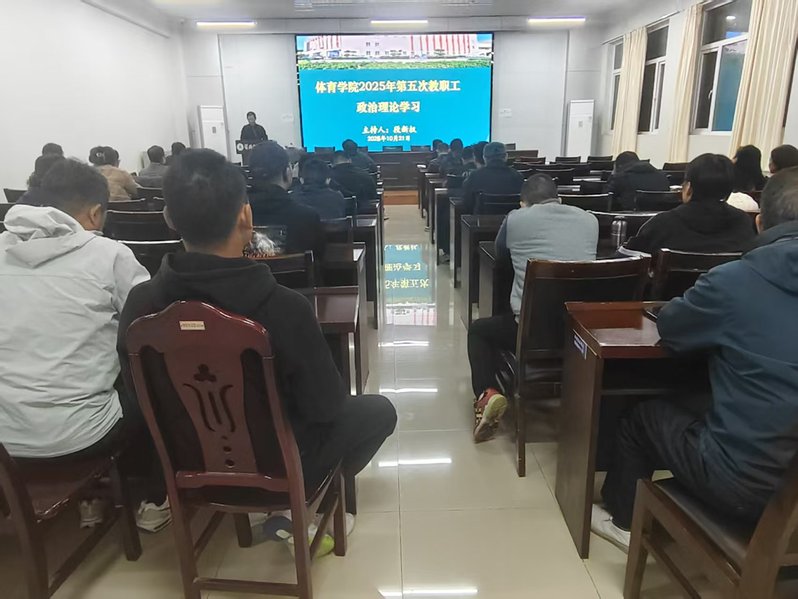 10月21日晚上20点00(周二),我院全体教职工,在体育运动中心205会议室,召开体育学院2025年第五次教职工政治理论学习,会议由体育学院党委书记段新权主持领学。学习聚焦《习近平谈治国理政》第五卷专题,从背景、核心内容、学习形式与要求、学习成效与意义四个方面展开,具体如下: