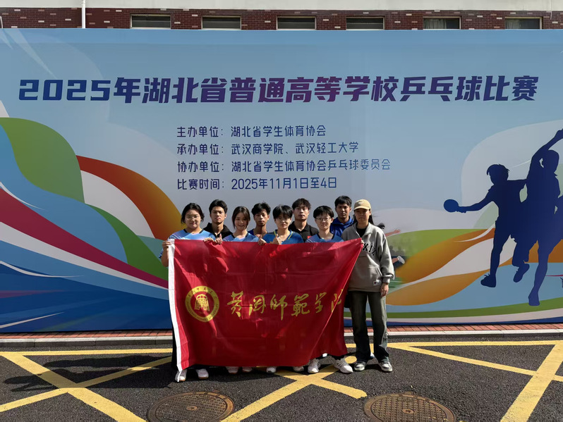 2025年11月1日至4日,湖北省普通高等学校乒乓球比赛在武汉商学院成功举行。本次赛事由湖北省学生体育协会主办,共吸引包括华中科技大学、武汉大学在内的80余所高校、超过800名运动员参与,竞争尤为激烈。在体育学院院长徐金陆担任领队,教练员宁启璜、胡悦妍的悉心指导下,黄冈师范学院乒乓球队奋勇拼搏,最终荣获男子团体第五名的优异成绩,创下我校参与该项赛事以来的历史最佳战绩。