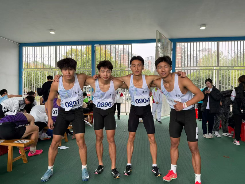 在极具观赏性的4*400米接力赛中,李强斌、朱泓宇、张弛、苟肇博四人组成的接力队齐心协力,每一棒都在倾尽全力,最终再获一枚银牌,同时也创造了黄冈师范学院有史以来在大型赛事中接力项目的最好成绩。