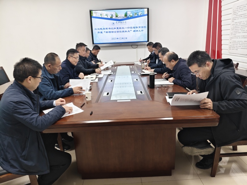12月1日,学校党委书记陈向军带队赴体育学院,专项调研新增硕士学位授权点申报与建设工作。副校长夏庆利及相关职能部门负责人陪同调研。