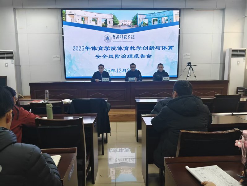 12月25日下午14时,学院在体育运动中心205会议室成功举办了“2025年体育学院体育教学创新与体育安全风险治理报告会”。会议特邀第五届全国高校教师教学创新大赛一等奖获得者,武汉体育学院鲍善军教授作题为“我的一场‘拳击比赛’—全国高校教师教学创新大赛经验分享”报告。北京体育大学《青少年体育》杂志执行主编梁林教授作“体育人文精神—学校大型体育赛事风险治理”报告。