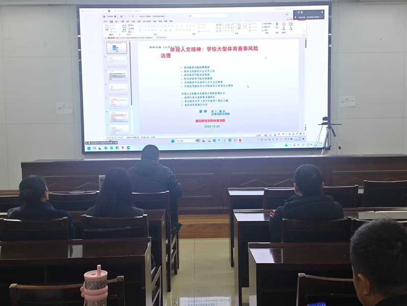 随后,北京体育大学梁林教授通过线上方式,作“体育人文精神——学校大型体育赛事风险治理”专题报告。梁教授立足体育人文精神内涵,从体育赛事概述、风险概念与特点出发,系统阐述了体育赛事风险治理的理论框架。他强调,体育赛事不仅是竞技的平台,更是人文精神与育人价值的载体。在风险应对方面,梁教授提出“预防为先、系统治理、人文关怀”相结合的综合方案,并围绕组织管理、应急预案、安全教育、医疗保障等方面展开具体措施分析。