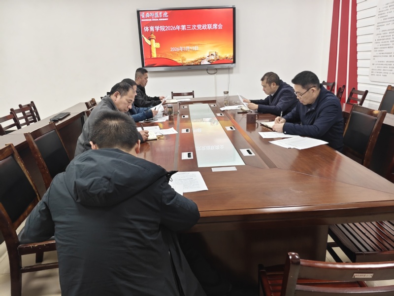 3月12日下午15点(周五),体育学院全体班子成员,在体育运动中心118会议室,召开体育学院第三次党政联席会议,会议由体育学
