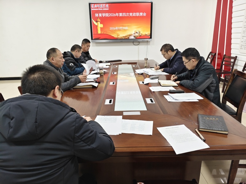 3月20日下午14点(周五),体育学院全体班子成员,在体育运动中心118会议室,召开体育学院第四次党政联席会议,会议由体育学